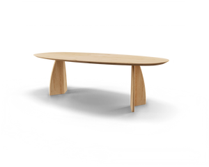 Staan de houtlook en originaliteit op de prio-lijst? Dan is deze Belair Oak een echte kanshebber. Het opvallende onderstel in combinatie met een Deens ovaal tafelblad springt meteen in het oog.