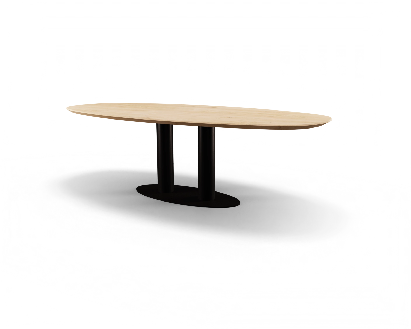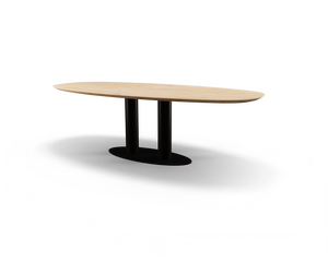 Twee kokers op een ovale grondplaat in combinatie met Deens ovaal tafelblad maken van deze tafel een echte eyecatcher. Stel het meubel zelf samen en laat hem perfect matchen met de rest van het interieur.