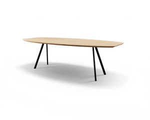 Kies voor een rank onderstel in combinatie met een wel heel speciaal tafelblad. Het Deens ovale blad met radius valt erg op door het originele design. Kies voor maatwerk uit eigen werkplaats.