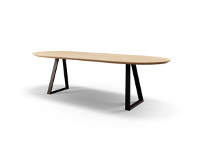 Voor het realiseren van de tafels worden verschillende soorten eikenhout gemaakt. Zo kan er bijvoorbeeld gekozen worden voor een strak eikenhouten blad, maar ook voor een variant waarbij de noesten en scheuren blijven zitten. Daarnaast maken we ook zelf de stalen onderstellen voor alle tafels. Dit heeft als resultaat dat we iedere tafel van top tot teen helemaal zelf maken. Echte lokale productie dus!