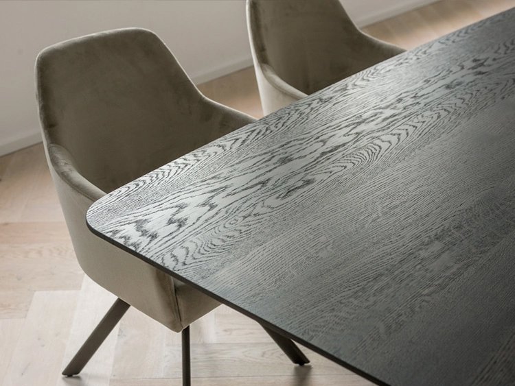 Voor het realiseren van de tafels worden verschillende soorten eikenhout gemaakt. Zo kan er bijvoorbeeld gekozen worden voor een strak eikenhouten blad, maar ook voor een variant waarbij de noesten en scheuren blijven zitten. Daarnaast maken we ook zelf de stalen onderstellen voor alle tafels. Dit heeft als resultaat dat we iedere tafel van top tot teen helemaal zelf maken. Echte lokale productie dus!