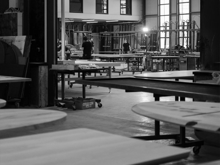 In de nieuwe werkplaats werken onze vaklui dag in, dag uit met de nieuwste machines om de mooiste tafels te maken. Dit doen ze op een zo efficiënt mogelijke manier zonder overbodige energie en materialen te verspillen.