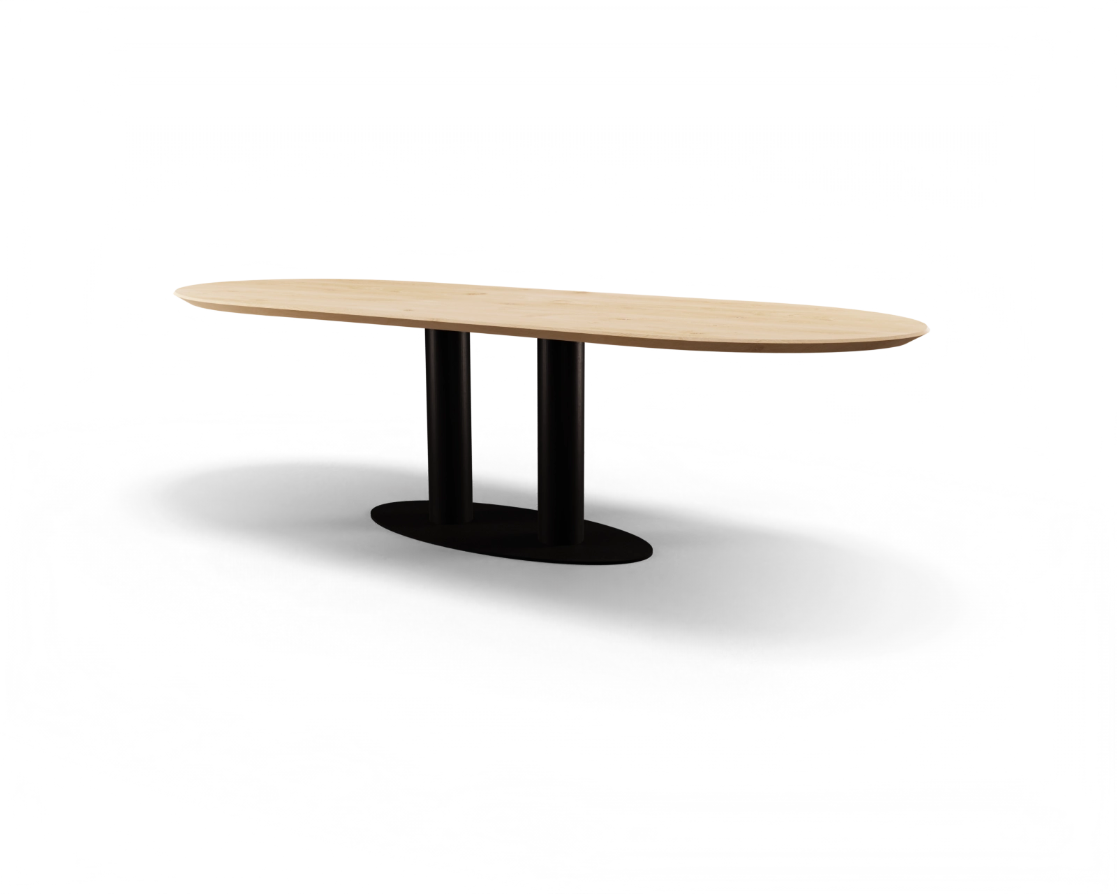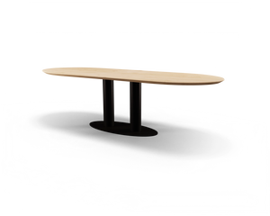 Fan van een opvallende tafel? Kies dan voor de Ovide. Twee stalen kokers op een ovale grondplaat vormen de basis van deze in het oog springende tafel. Een échte eyecatcher!