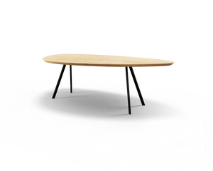 Met een organische vorm waag je de sprong in het diepe en kies je voor echt iets origineels. De kiezelvorm leent zich perfect voor een grote, opvallende tafel. Kies uit verschillende kleuren en soorten eiken.