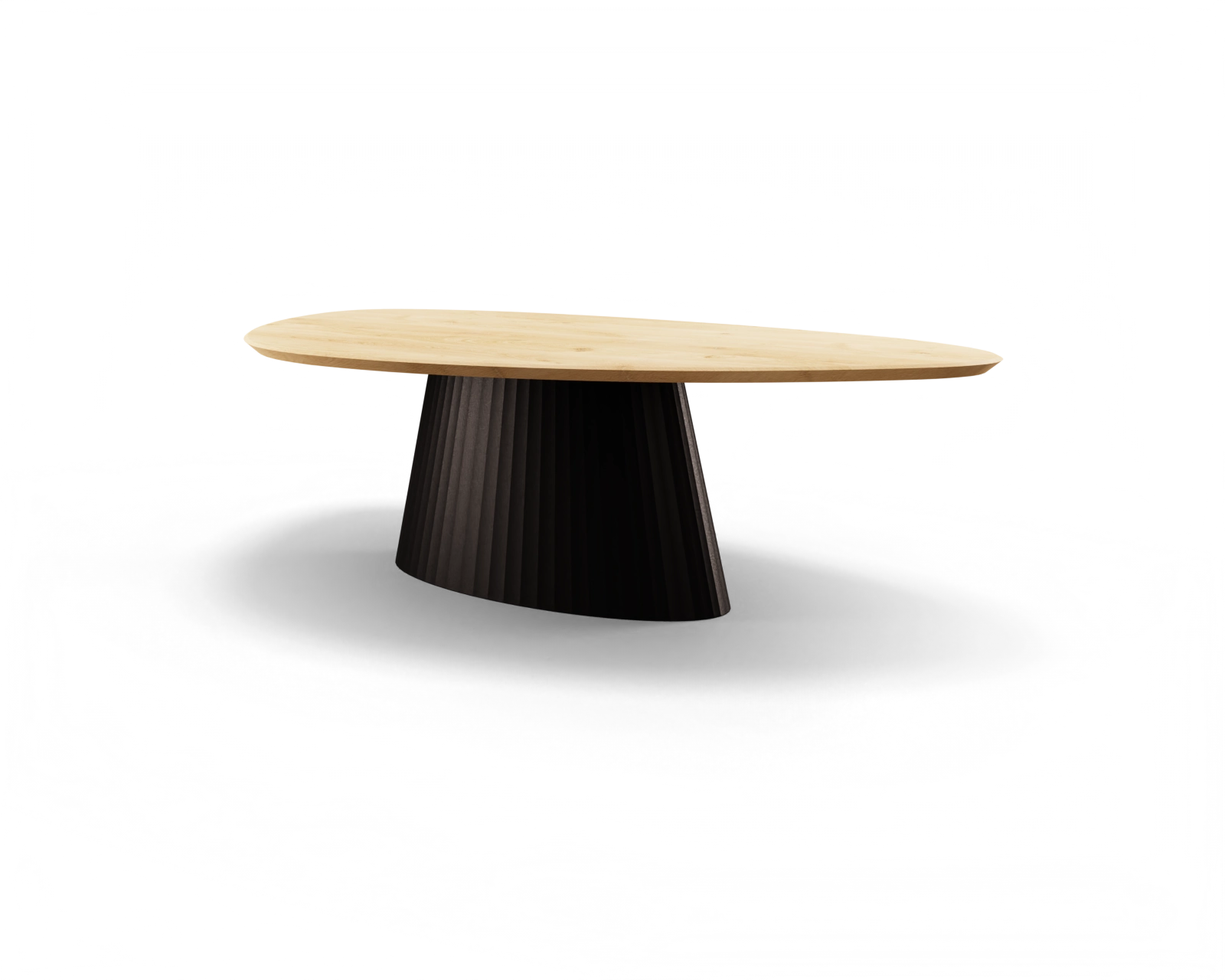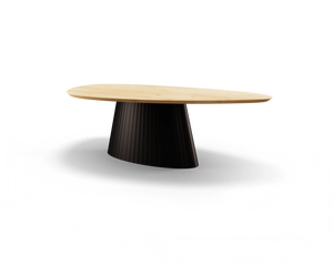 Een kiezelvormig tafelblad met een ovale, stalen basis mag met recht een opvallende combinatie worden genoemd. Waag de sprong in het diepe en kies voor deze in het oog springende tafel.