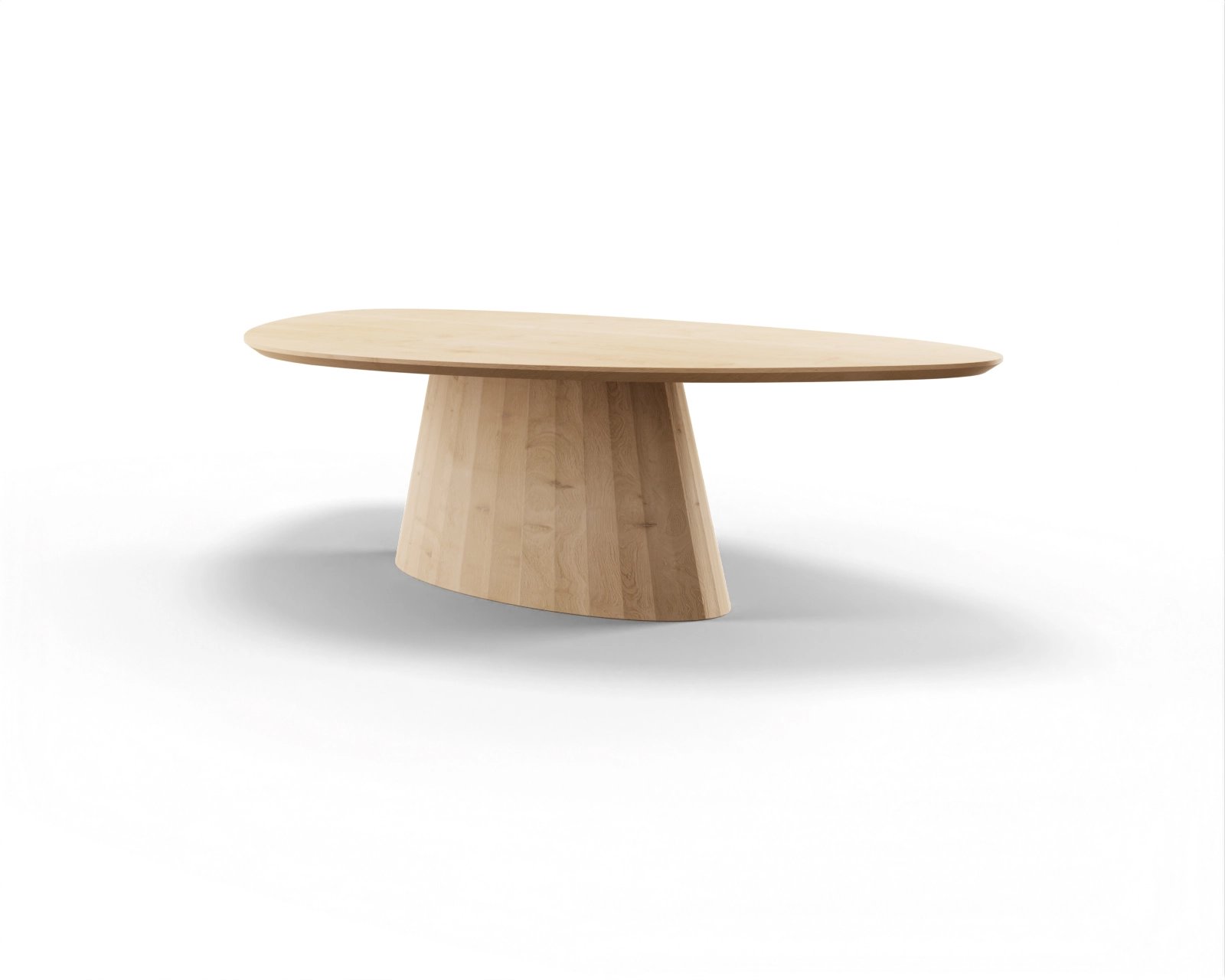 Een kiezelvormig tafelblad met een ovale, houten basis mag met recht een opvallende combinatie worden genoemd. Waag de sprong in het diepe en kies voor deze in het oog springende tafel.