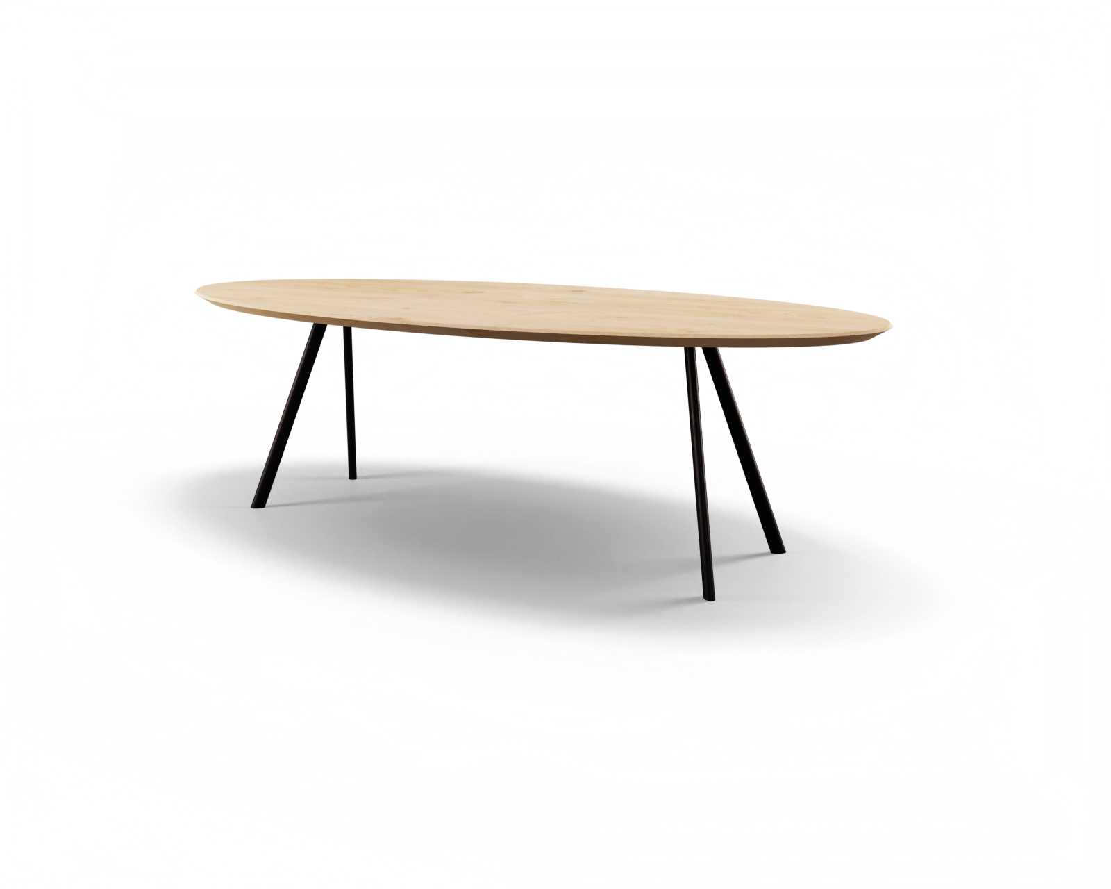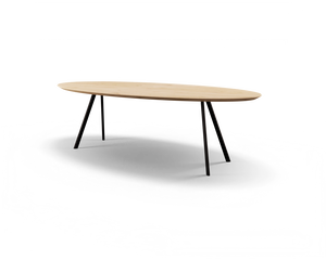 Vier ranke, schuine poten vormen de basis van deze tafel. Kies voor een ovaal tafelblad en bepaal zelf de specificaties. Denk in mogelijkheden en kies voor een opvallende nieuwe aanwinst.