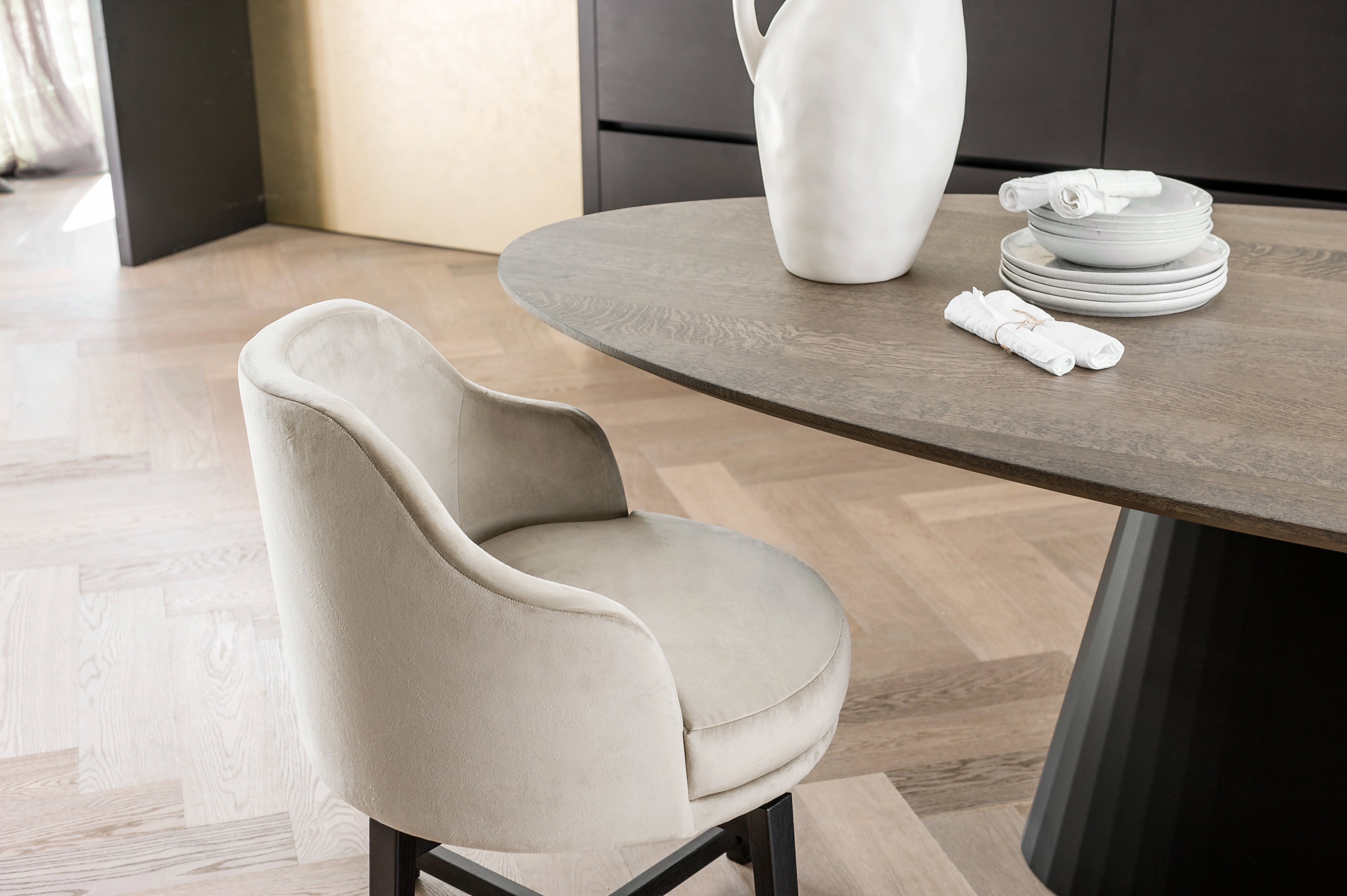 Voor het realiseren van de tafels worden verschillende soorten eikenhout gemaakt. Zo kan er bijvoorbeeld gekozen worden voor een strak eikenhouten blad, maar ook voor een variant waarbij de noesten en scheuren blijven zitten. Daarnaast maken we ook zelf de stalen onderstellen voor alle tafels. Dit heeft als resultaat dat we iedere tafel van top tot teen helemaal zelf maken. Echte lokale productie dus!