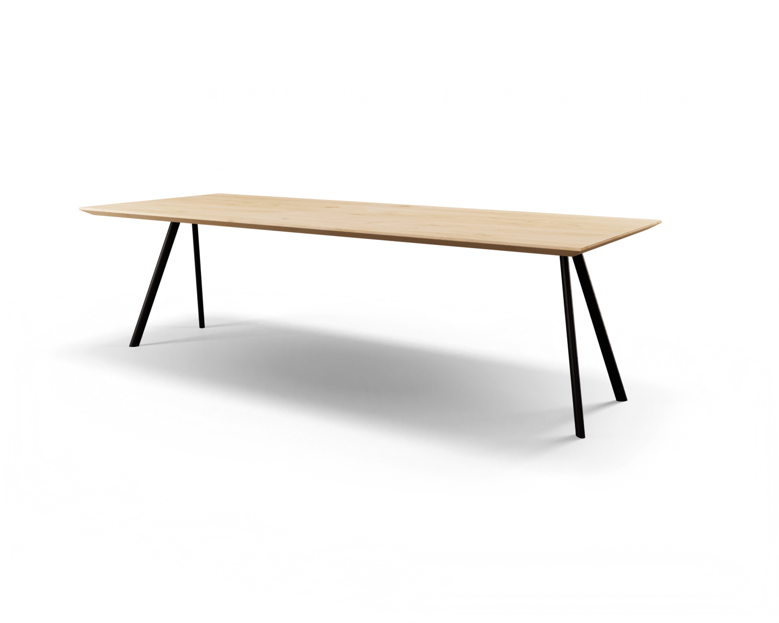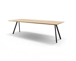 Een klassiek rechthoekig tafelblad dat wordt gedragen door 4 schuine poten. Dit is de basis van de Cabanne. Bepaal zelf alle overige details en kies voor écht maatwerk.